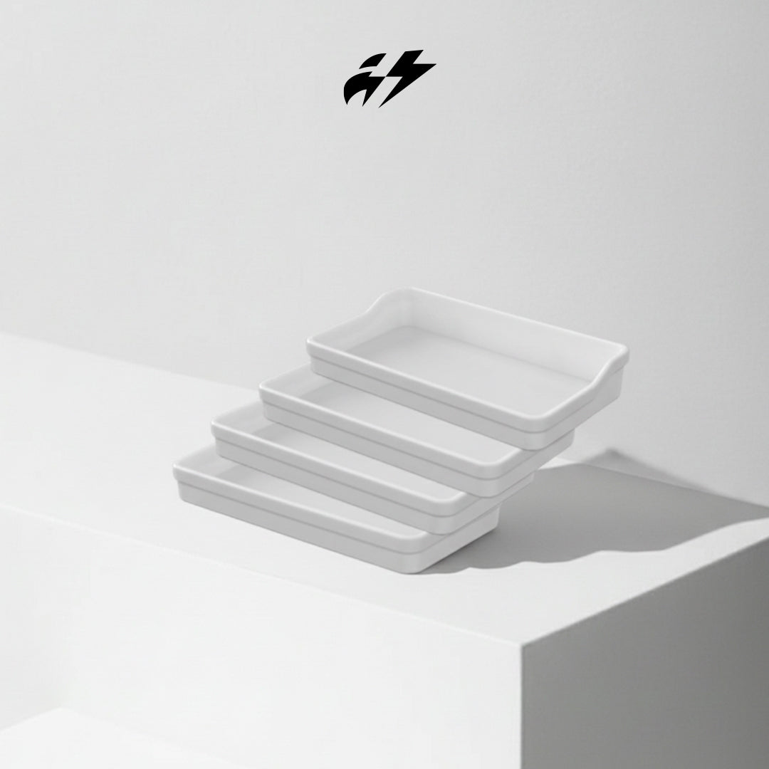 - ✔ صينية تخزين صغيرة (عدد 4) — للحفاظ على الأدوات الصغيرة مثل USB، المفاتيح، القواطع، الأقلام.