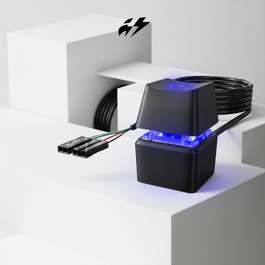 تحكم بتشغيل حاسوبك بطريقة أسهل وأنيقة مع زر التشغيل الخارجي للكمبيوتر، الحل الذكي والمثالي لعشّاق التجميعات والديكور المكتبي العصري.
